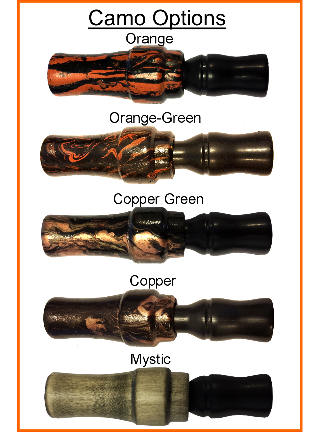 www.teamorangehorn.com Rabbit Squealer MODEL# RS-C-MCO Dual Range For Long And Short Distances With The Unique Port. PACKED WITH PERFORMANCE! MOLDED IN CNC MACHINED MOLDS FOR EXACTING TOLERANCES RUGGED PLASTIC FOR YEARS OF DEPENDABLE SERVICE WITH MYSTIC CAMO WOOD BARREL PRODUCES LOUD AND SOFT VOLUMES LASER CUT REED FOR OUTSTANDING SOUNDS